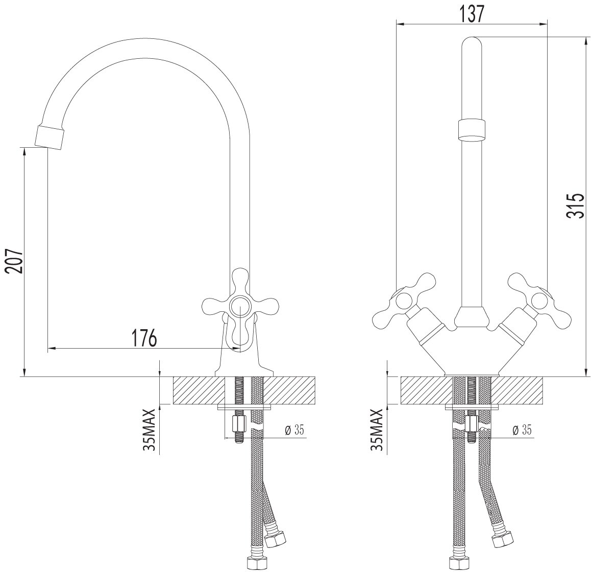 Смеситель для кухни Lemark Standart LM2105C, двухвентильный, хром