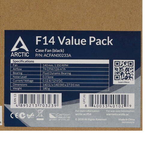 Вентилятор 140 Artcic F14 Value Pack (ACFAN00233A)