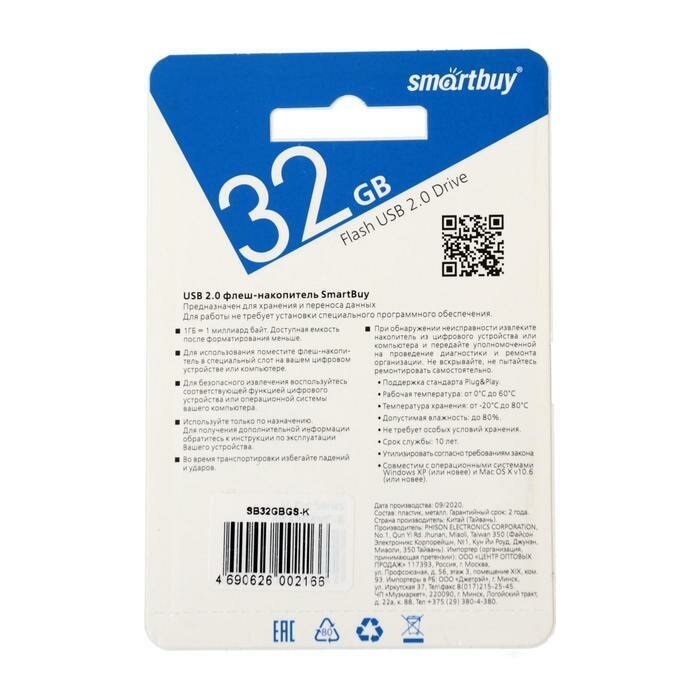 Купить Флеш-карта SmartBuy Glossy series, 32 Гб, USB 2.0, чтение до 25 Мб/с, черная