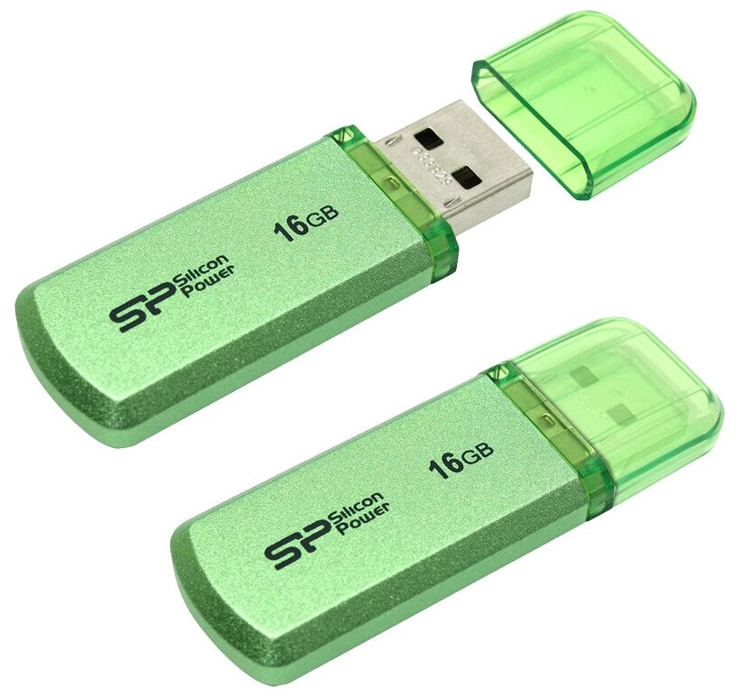 Комплект 2 штук, Флеш-память Silicon Power Helios 101 16GB USB 2.0, зеленый, алюминий