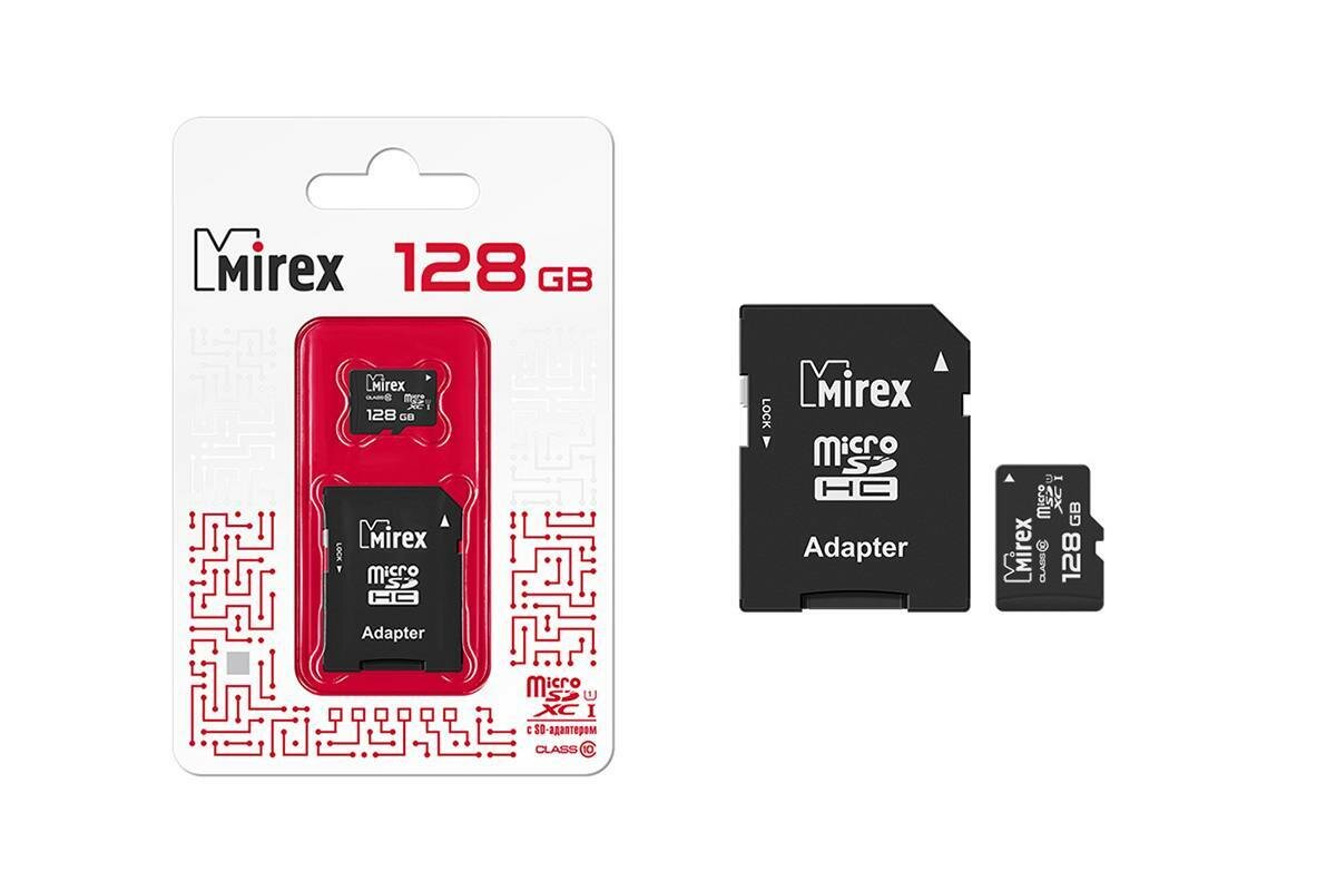 Карта памяти Mirex microSD, 128 Гб, SDXC, UHS-I, класс 10, с адаптером SD Mirex 1910889 .