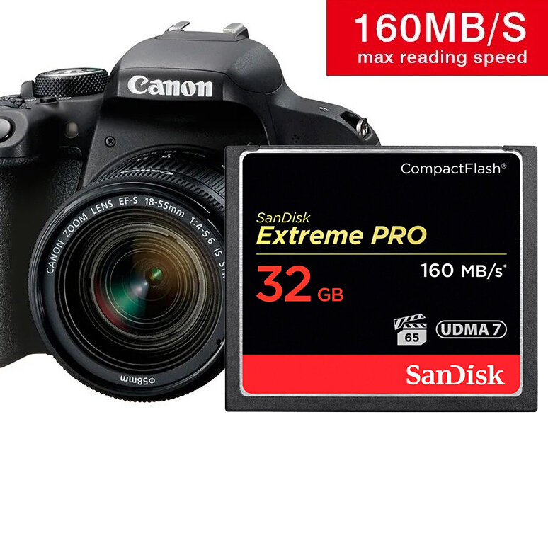 Карта памяти SanDisk Compact Flash 32 ГБ, R/W 160/150 МБ/с, 1 шт., черный
