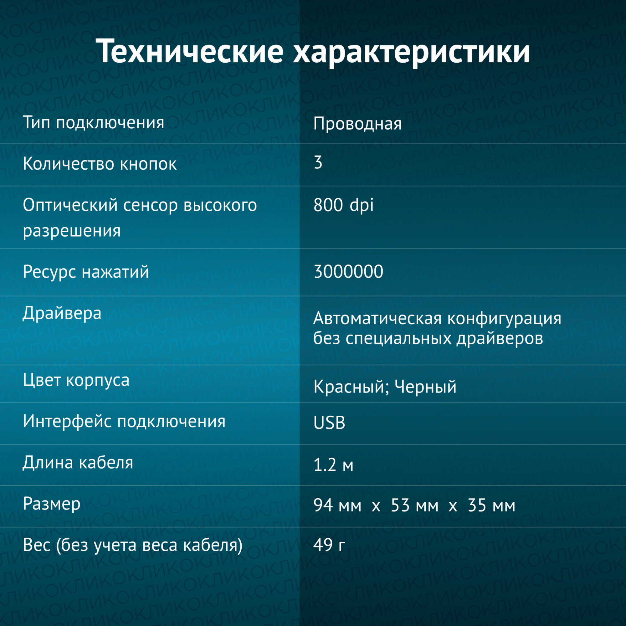 Мышь Oklick 115S, оптическая, проводная, USB, черный и красный [711637]