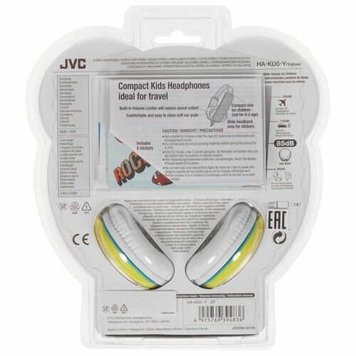 JVC Наушники JVC проводные детские, модель HA-KD5-Y-EF, серия KIDS. Цвет: желтый/голубой