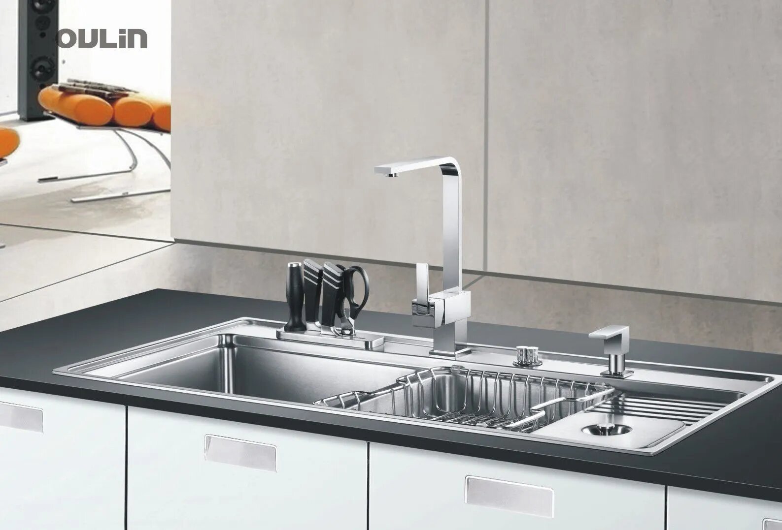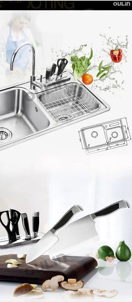 Мойка для кухни Oulin OL-H9910, аксессуары в комплекте (ножи + ножницы)