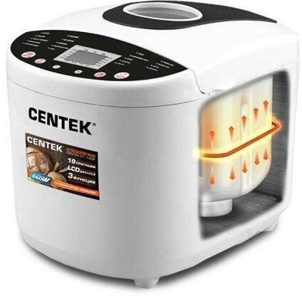 Хлебопечка Centek CT-1406 White <900г> 650Вт 19 программ (йогурт, джем, кекс), LCD, отсрочка