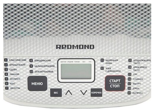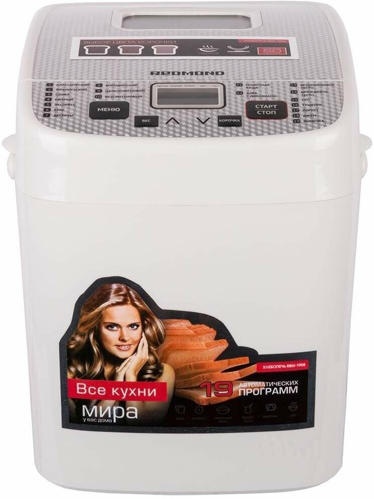 Хлебопечка Redmond RBM-1908, 450 Вт, 19 программ, выбор цвета корочки, варка джема, белая REDMOND 19 .