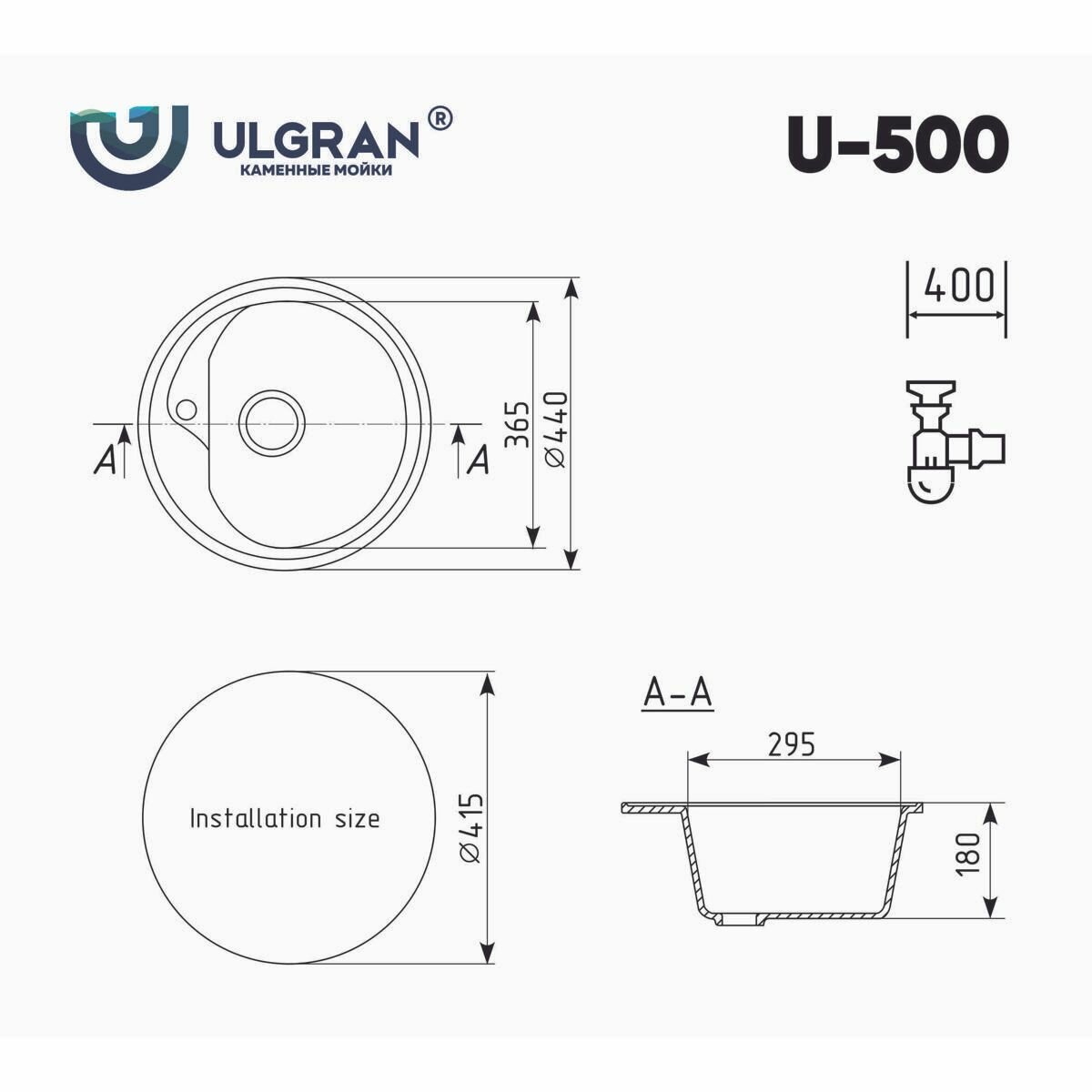 Мойка кухонная мраморная ULGRAN U-500 440мм круглая (308) черный/Раковина для кухни