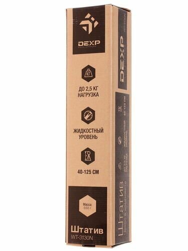 Штатив для фотоаппарата DEXP WT-3130N коричневый, напольный, до 2.5 кг, от 40 см до 125 см