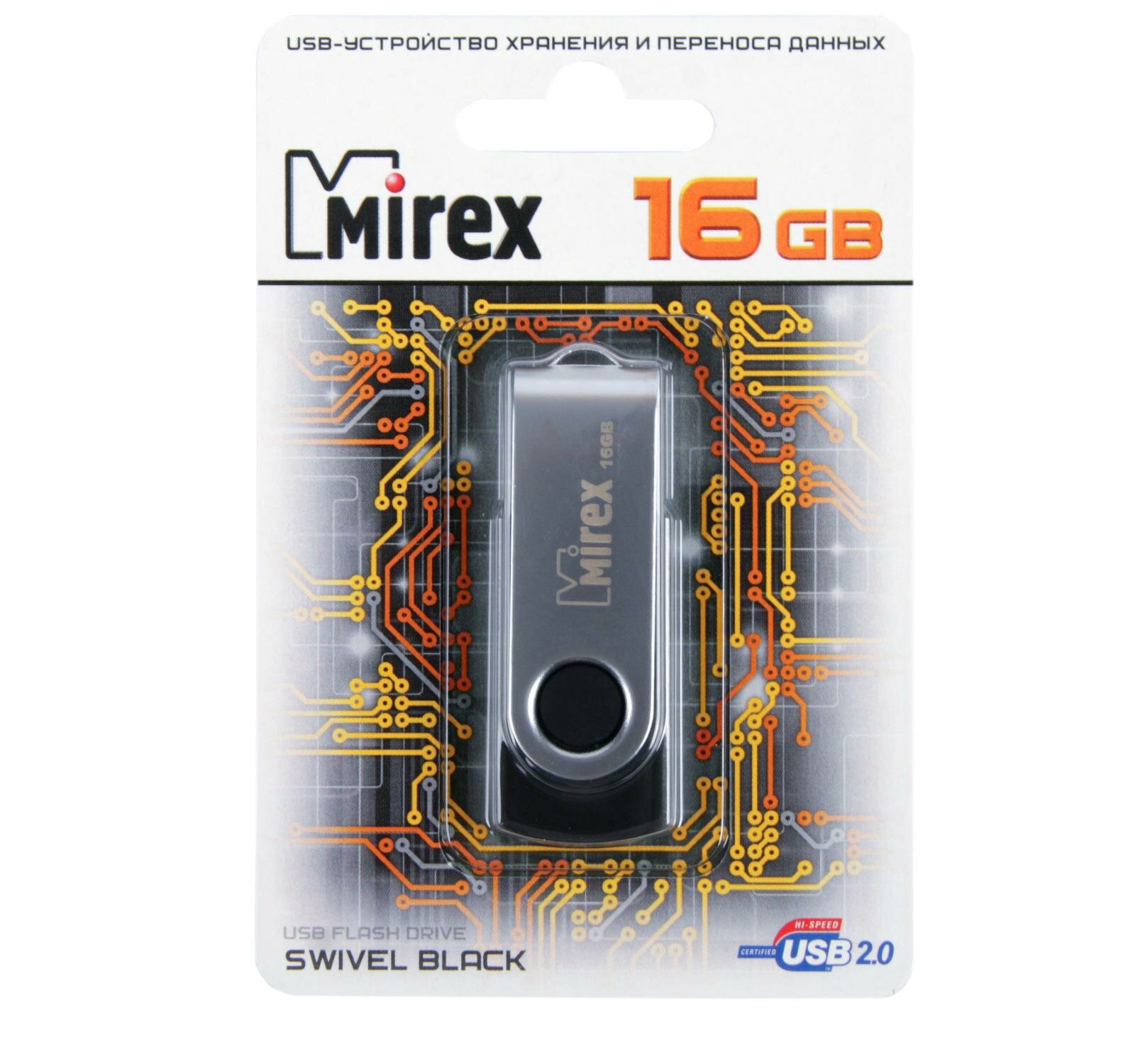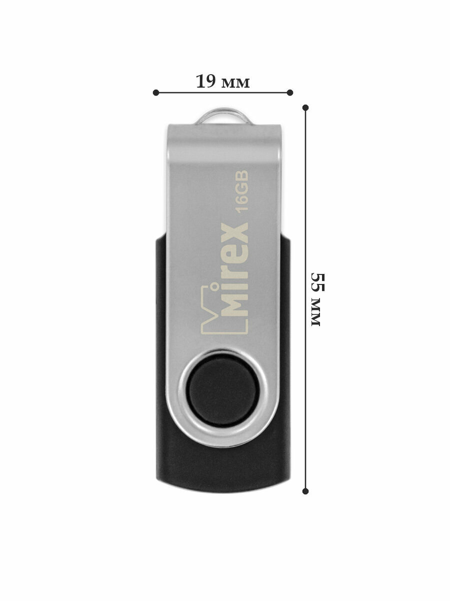 Флешка 16GB Mirex Swivel, USB 2.0, Черный