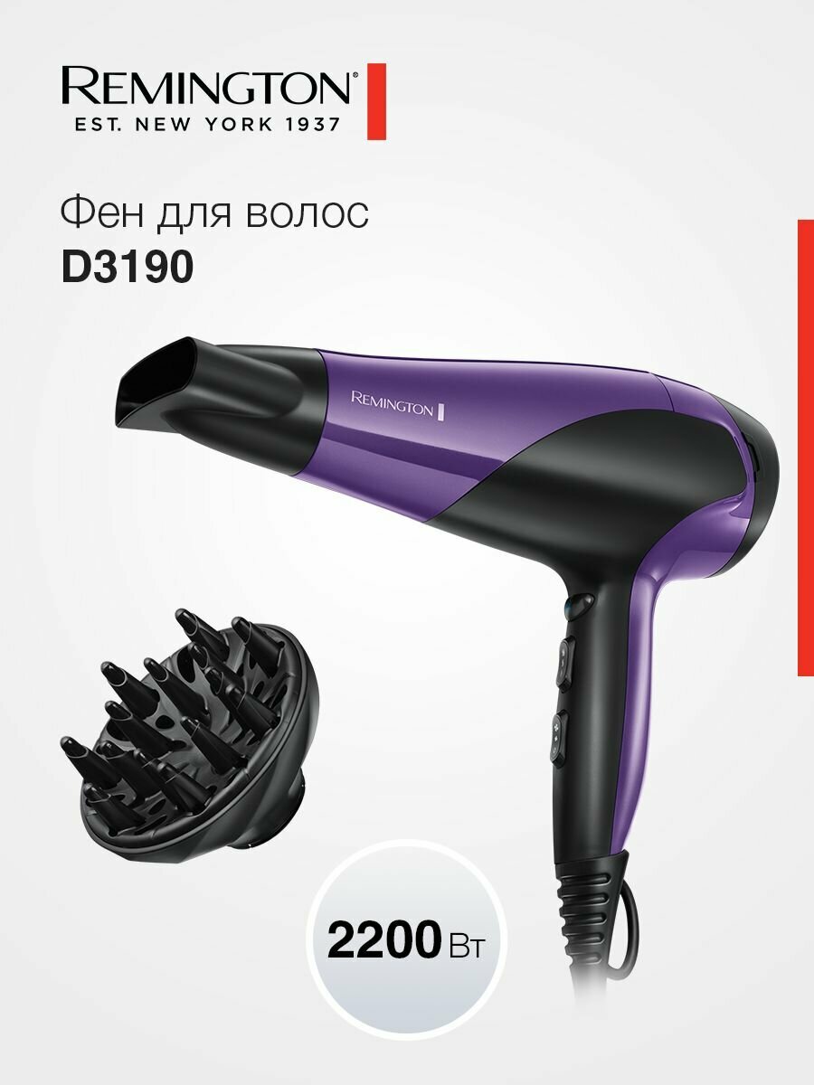 Фен Remington, Набор для укладки волос Ionic Dry D3190, фиолетовый/черный