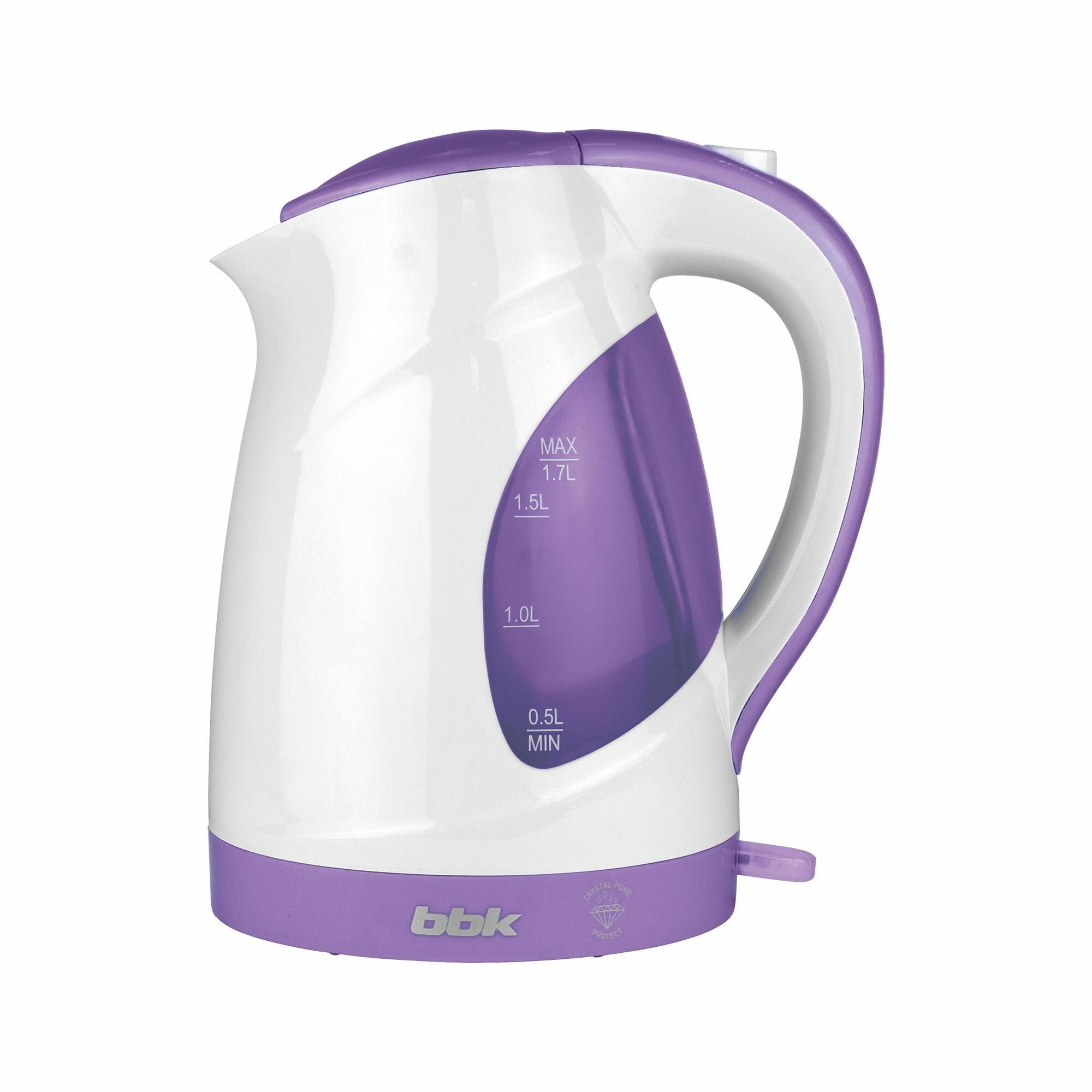 Чайник электрический BBK EK1700P, Электрочайник бытовой с подставкой для дома на кухню, 1.7 л, 2200 Вт, белый/фиолетовый