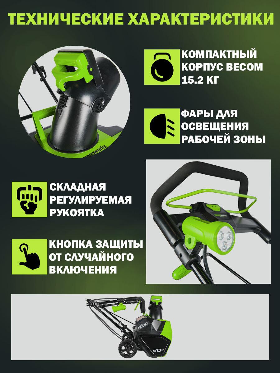 СохранитьСнегоуборщик аккумуляторный бесщеточный Greenworks GD40ST 40В 510мм без аккумулятора и ЗУ интересное: