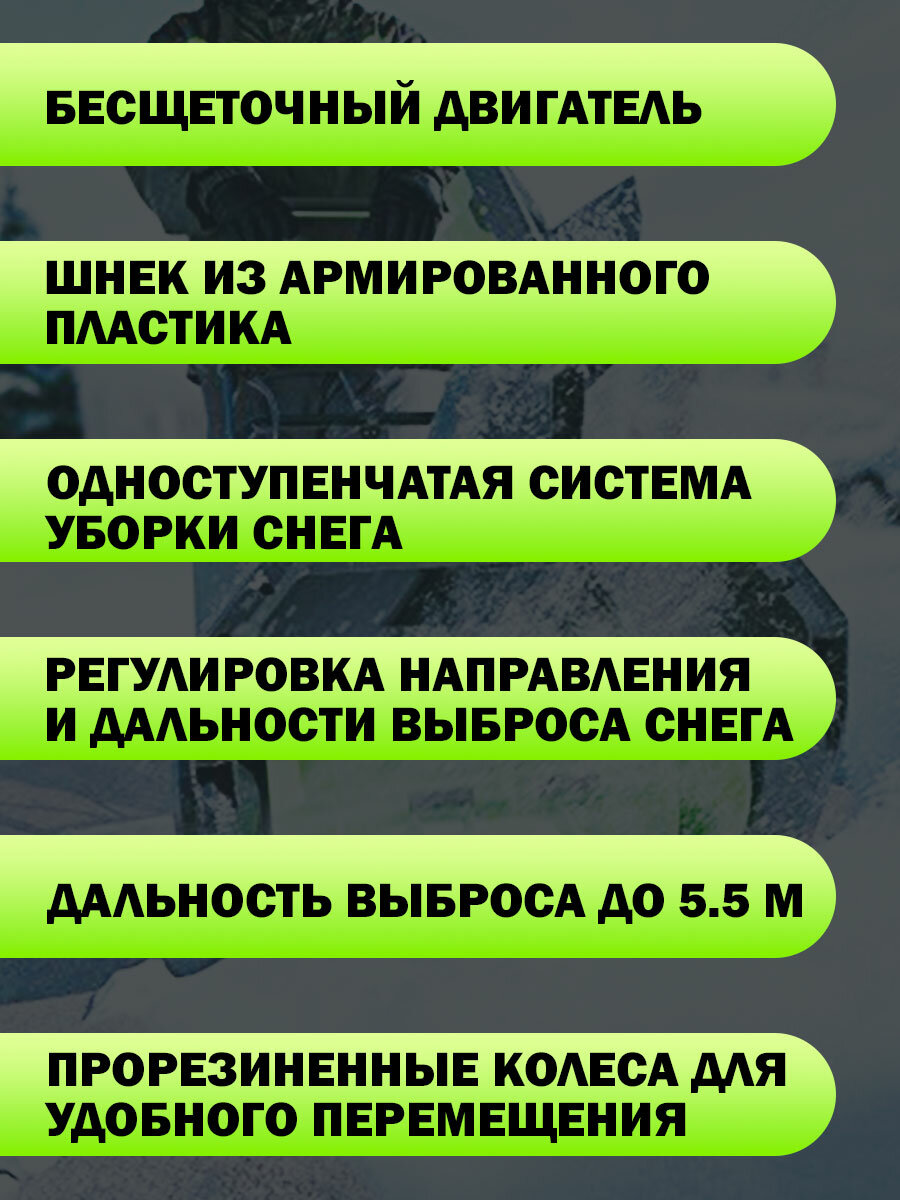 | Минусы: | -6АЧ аккумулятора хватает примерно на 250 кв м свежевыпавшего снега. Будет снег поплотнее или аккумулятор менее емкий - будет совсем мало получаться
