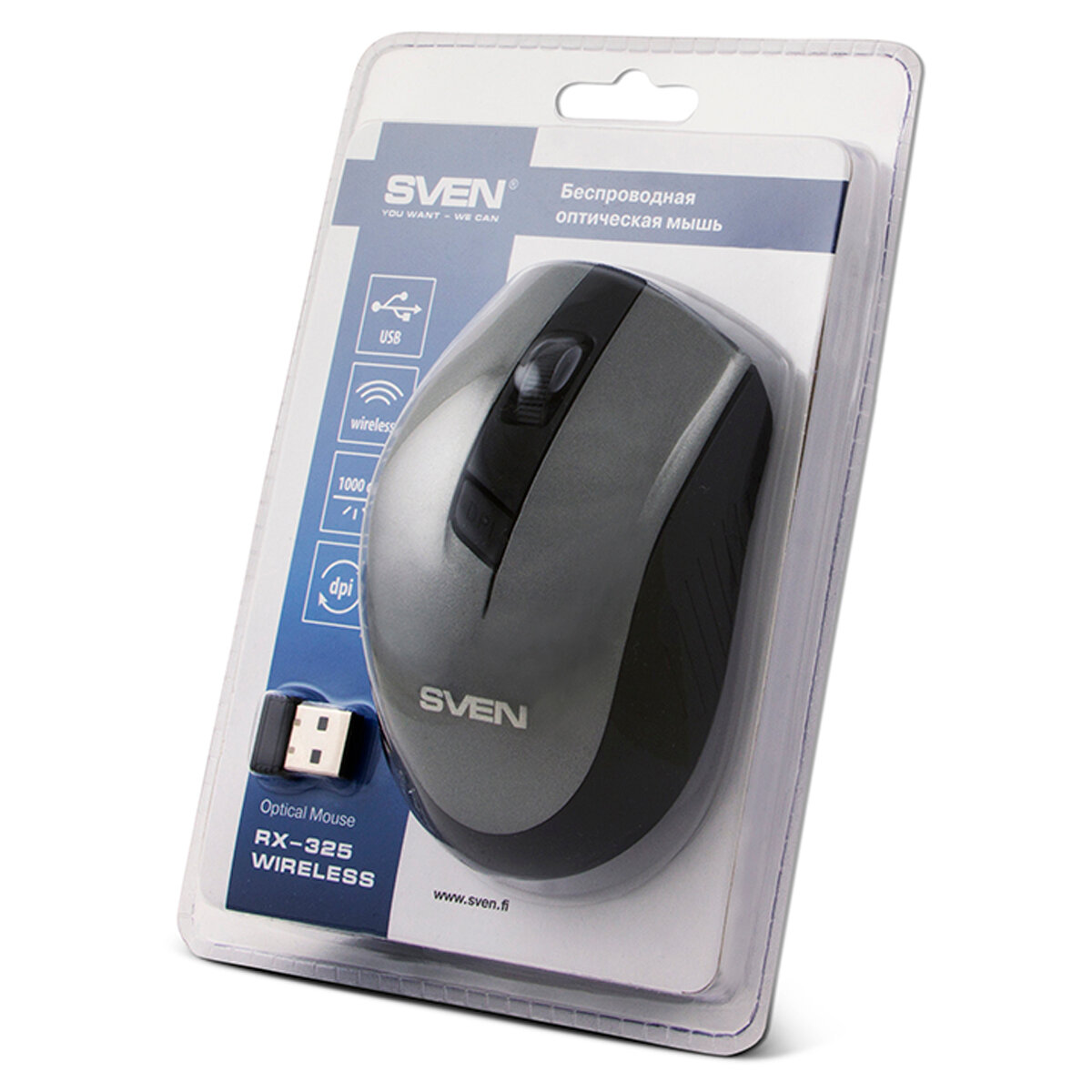 Мышь беспроводная SVEN RX-325 Wireless, с настраиваемой скоростью курсора, серая