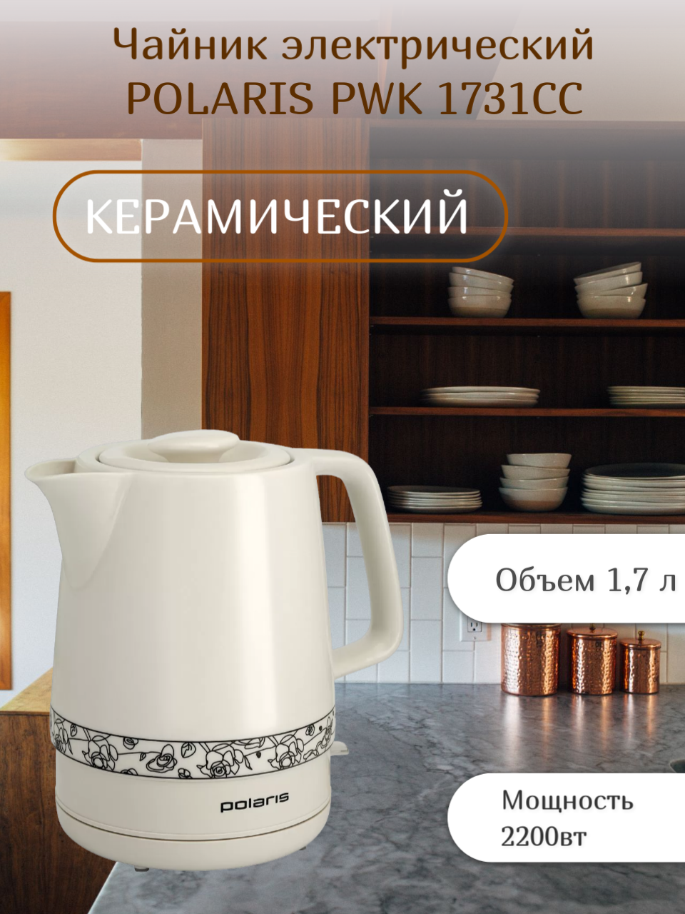 Чайник Polaris PWK1731CC цветы, керамический, 1.7л, 2200Вт