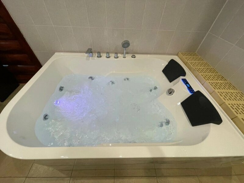 Простое интуитивное управление. Очень удобная форма и расположение массажных форсунок. Материал, из которого ванна изготовлена, приятен для тела. |