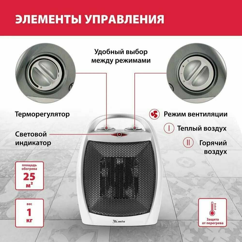 Тепловентилятор электрический, керамический BHС-1500, 3 режима, вентилятор, нагрев 750-1500 Вт MTX интересное: