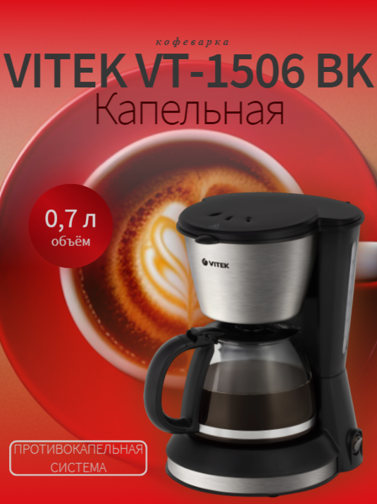 Ниже Вы можете прочитать отзывы на Кофеварка Vitek VT-1506, ознакомится с подробными характеристиками, посмотреть интересные обзоры и фотографии на Кофеварка Vitek VT-1506.