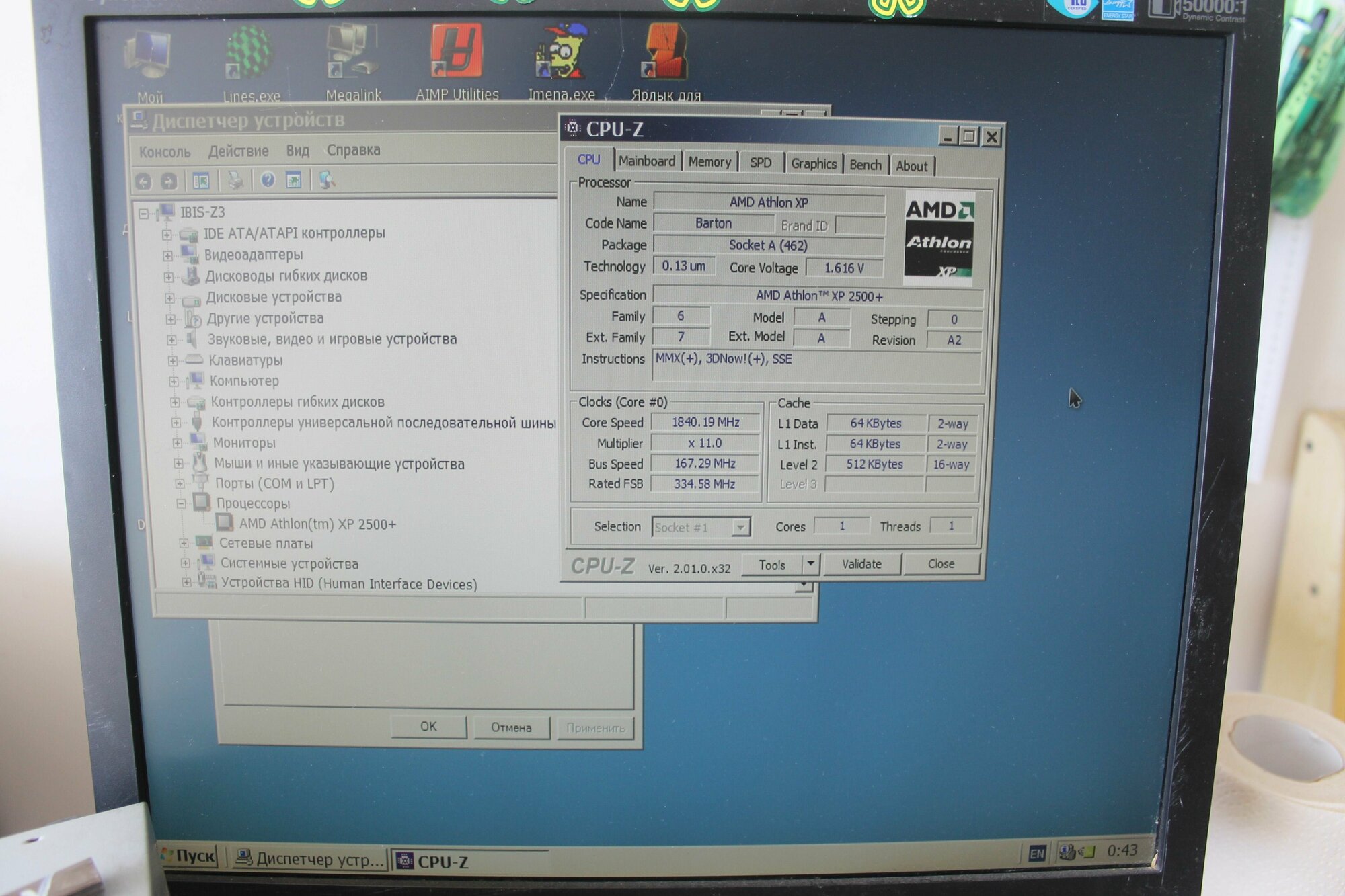 Процессор Socket 462 AMD Athlon XP 2500+ BarTon 1833 MHz AXDA2500KV4D Bus speed 333 MHz L2 512 KB OEM поставка без кулера интересное:
