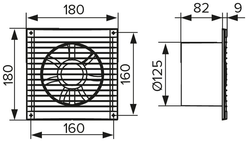 Вентилятор вытяжной ERA E 125 S, 180x180 мм, d=125 мм, 220‒240 В