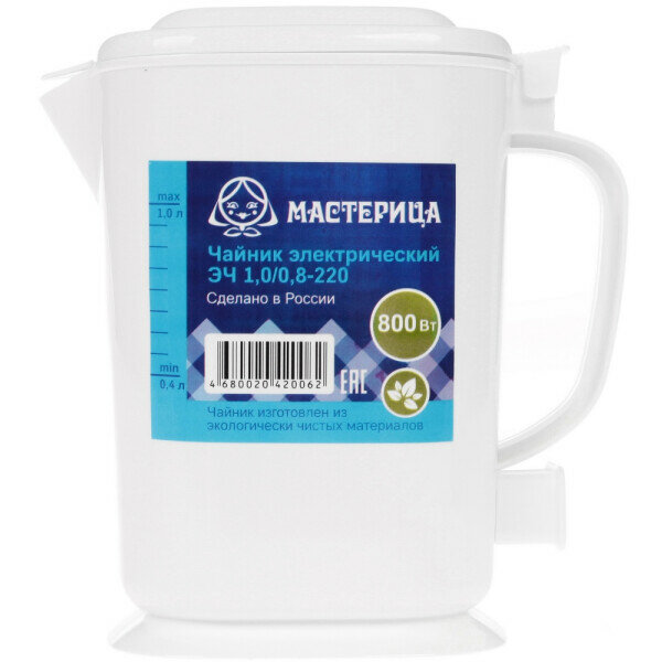 Чайник электрический Мастерица ЭЧ-10/08-220Б, пластиковый, белый, 1 л, 800 Вт