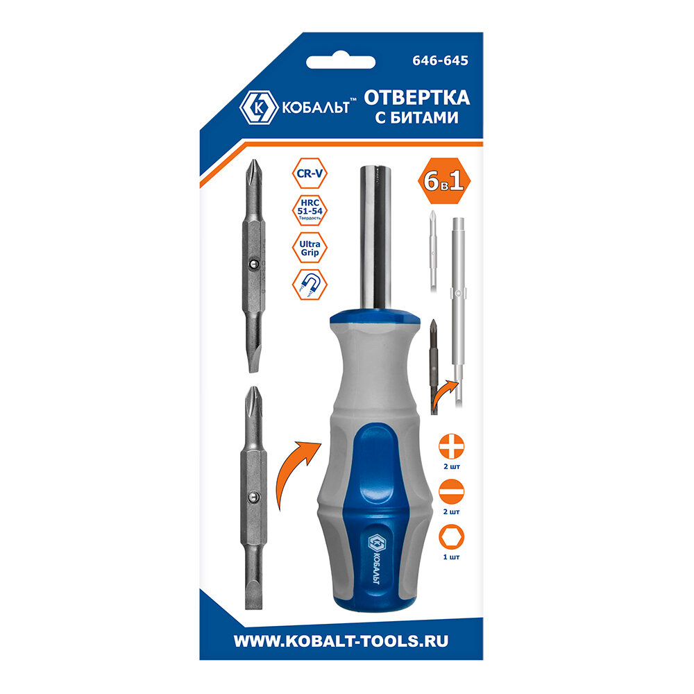 Купить Отвертка рукоятка кобальт Ultra Grip с набором двусторонних бит, CR-V (3 шт.) блистер (646-645)