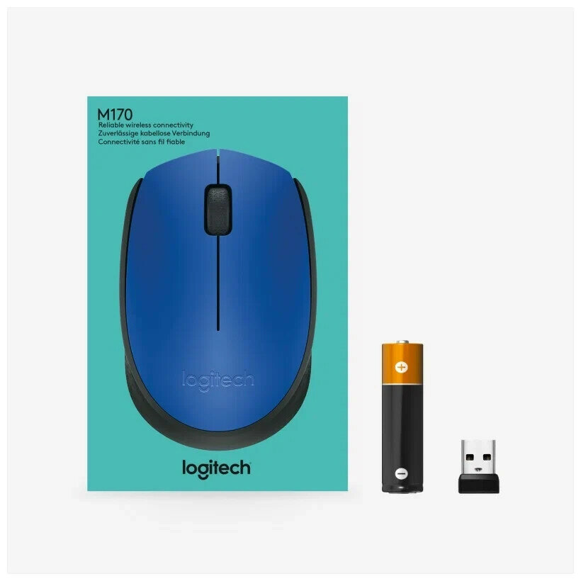 Компьютерная мышь Logitech Беспроводная, оптическая, USB, M170, синяя (910-004647)