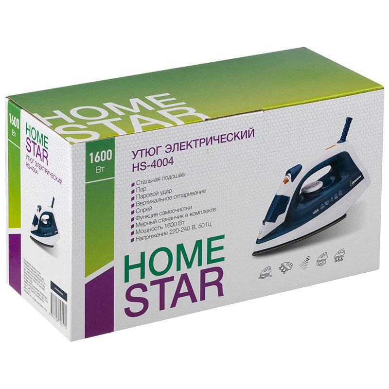 Утюг HOMESTAR HS-4004 голубой (1600Вт, пар, спрей, паровой удар, стальная подошва)