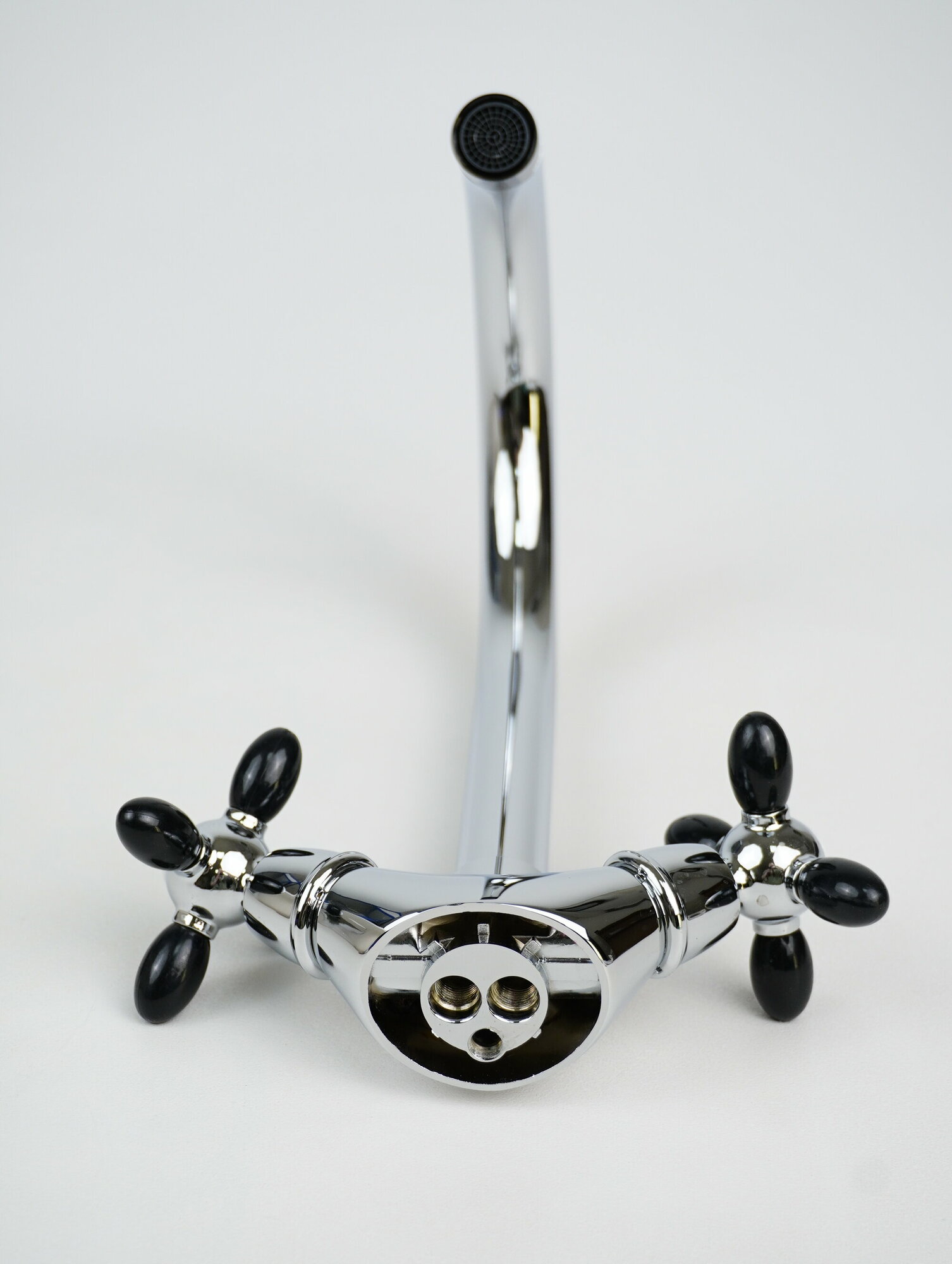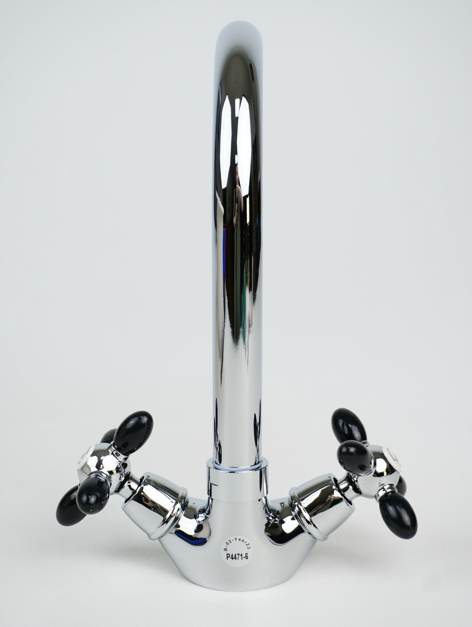 Смеситель д/кухни с высоким изливом, цветные ручки, аэратор - черный, хром, Potato (Китай), арт P4471-6