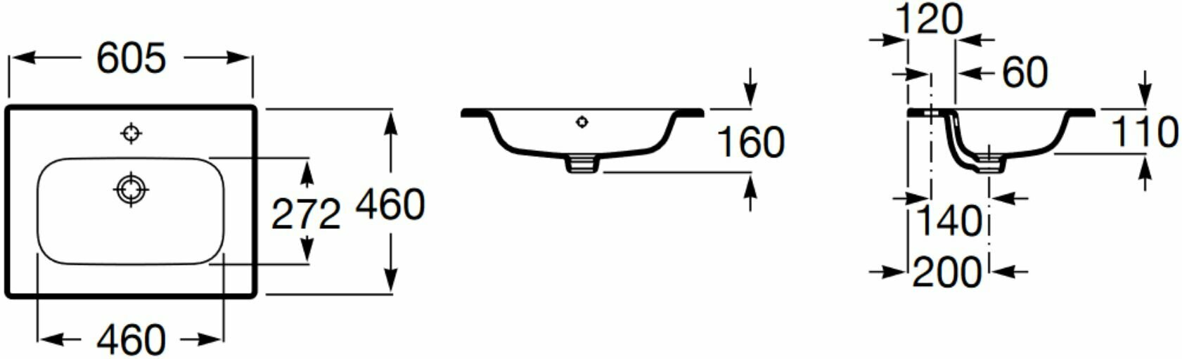 Раковина полувстраиваемая (60х46) Roca Victoria-N Unik 32799E000