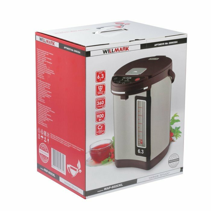 Термопот WILLMARK WAP-602CKL, 6.3 л, 900 Вт, вишнёвый