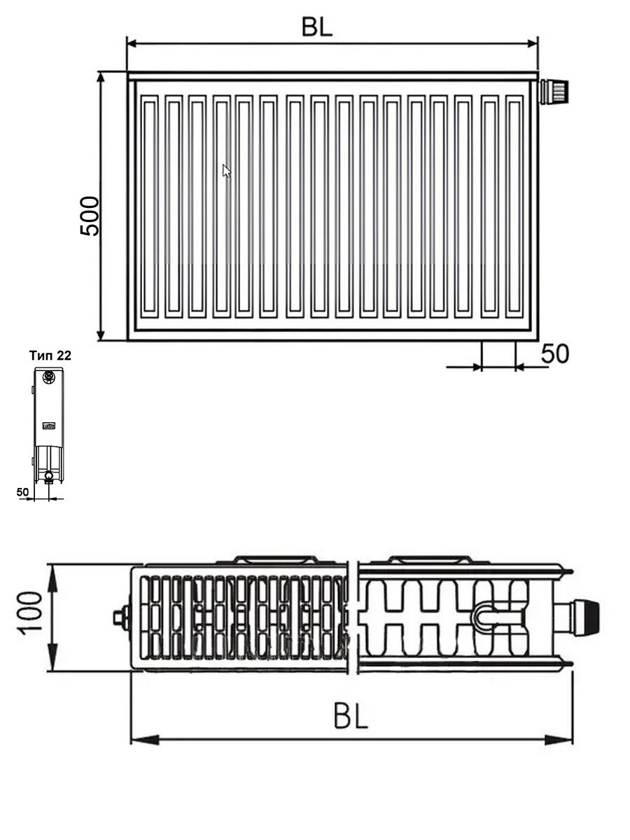 Радиатор, FTV 22, 100*500*1000, X2 Inside, R, RAL 9016 (белый), россия