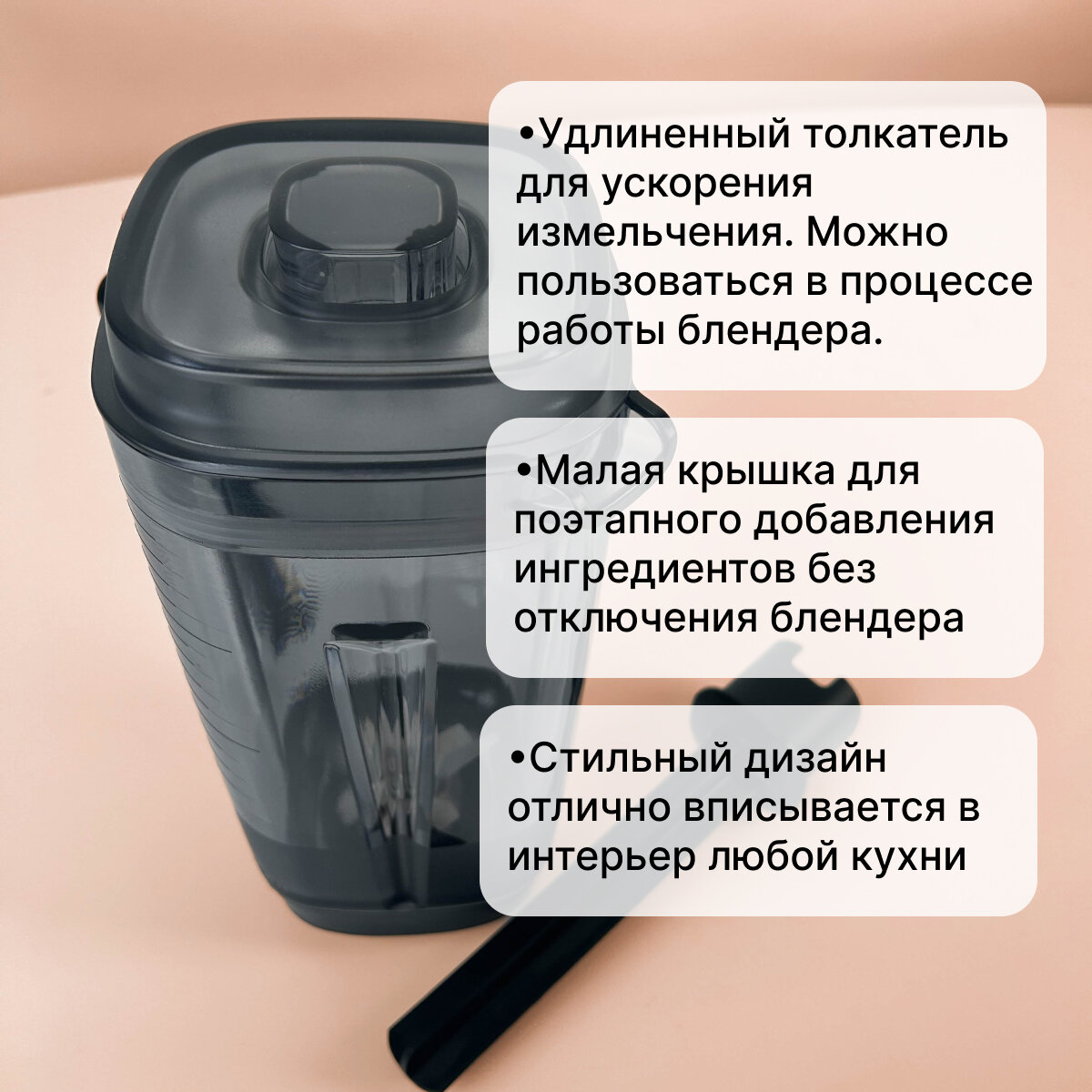 | Минусы: | Если требуется превратить финики в пасту или похожий липкий продукт, небольшого объёма - надо понимать, что он просто размажет массу по стенкам и тогда даже толкатель не поможет.