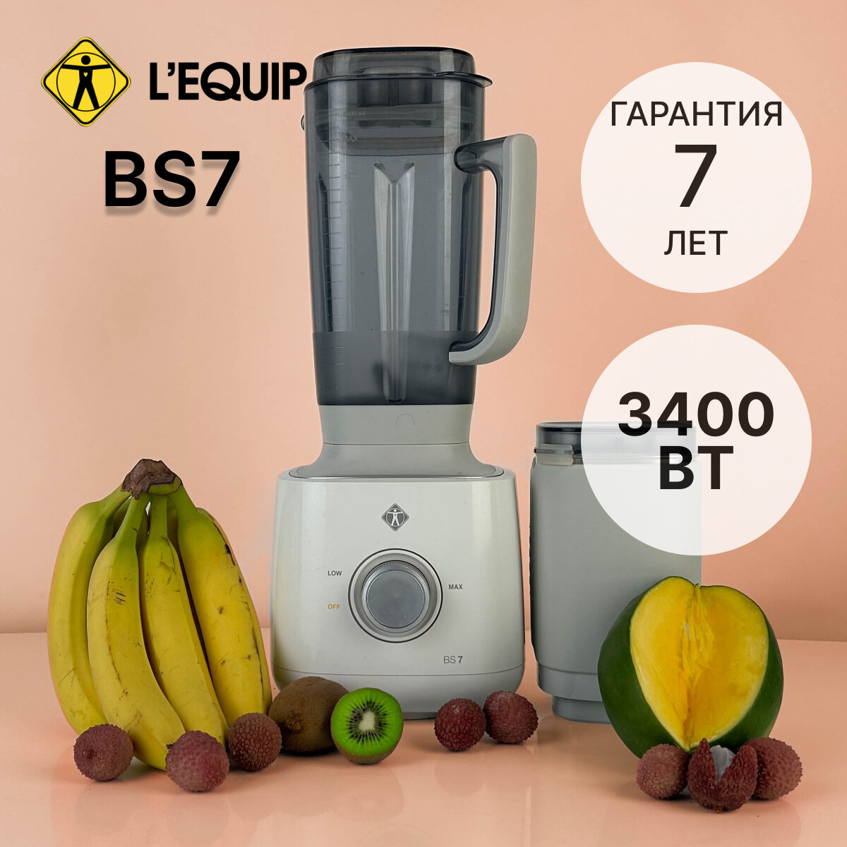 Профессиональный блендер L'equip BS7 Quattro, белый, 3400 Вт