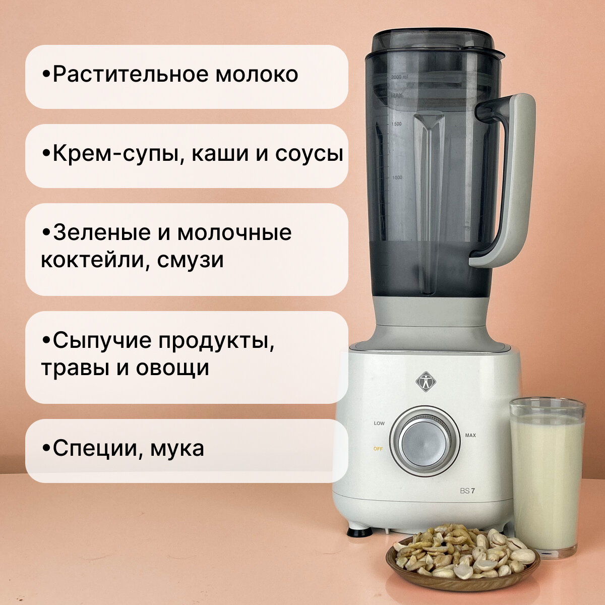 | Плюсы: | Мощный, быстрый, надежный. Ореховое молоко и смузи готовится за секунды. |