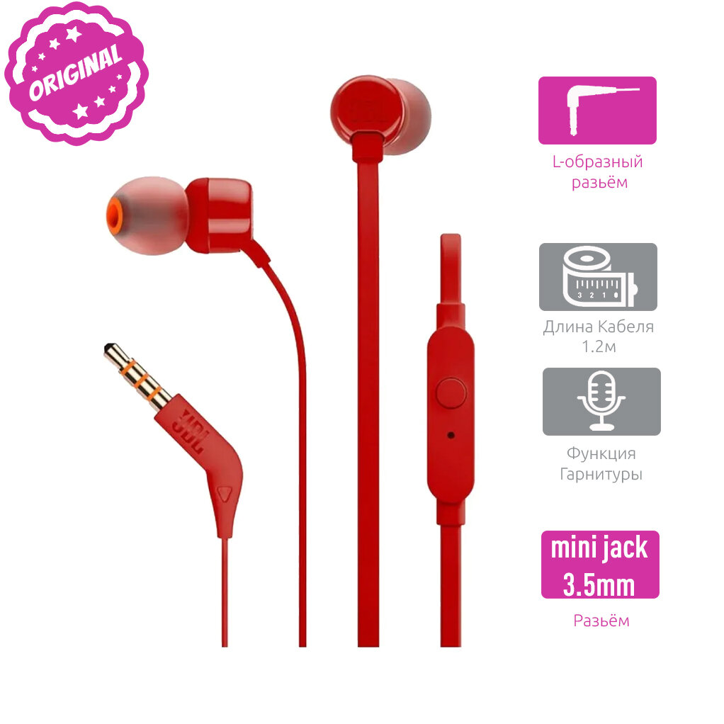Jbl Наушники TUNE110 Lifestyle 1.2м красный проводные в ушной раковине
