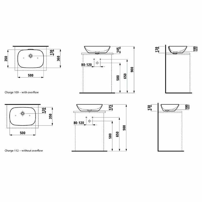 Накладная раковина Laufen Ino 50х36х13см, арт. 8.1230.2.000.109.1, SaphirKeramik, без отверстия для смесителя, с переливом