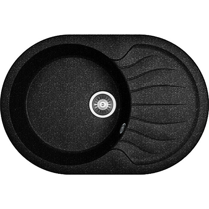 Мойка для кухни врезная каменная Dr. Gans БЕРТА-760, цвет черный, с крылом, овальная, 760х510х217 мм