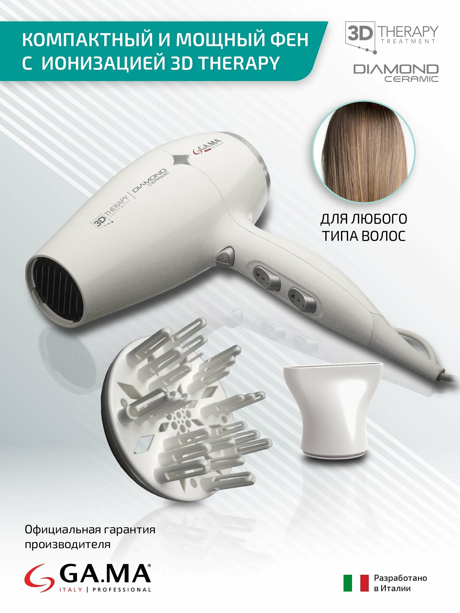 Ga-Ma DIAMOND 3D Фен GA.MA 3D-терапия, ионизация, мощность 2300 Ватт, керамика, белый