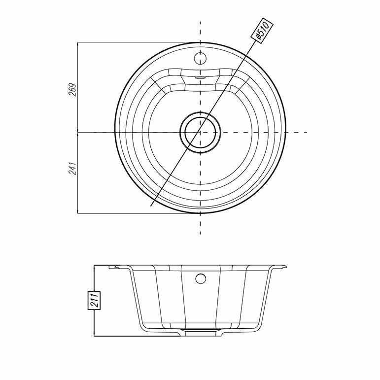 Мойка керамогранитная Aquaton Мида (510х210х510) круглая, одинарная, графит 1A712732MD210