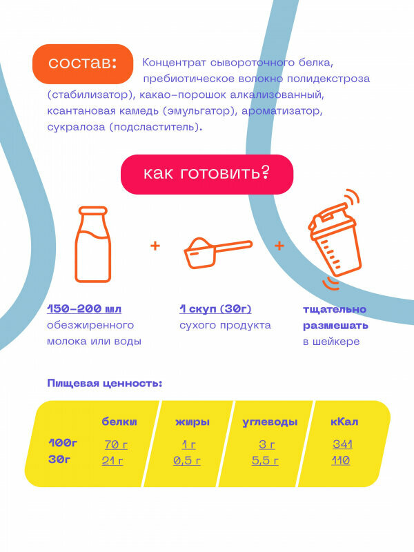 | Плюсы: | Протеин вроде по вкусу неплохой, состав более-менее |