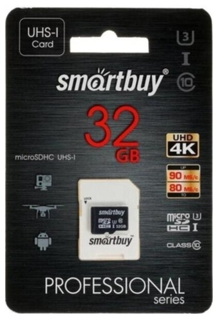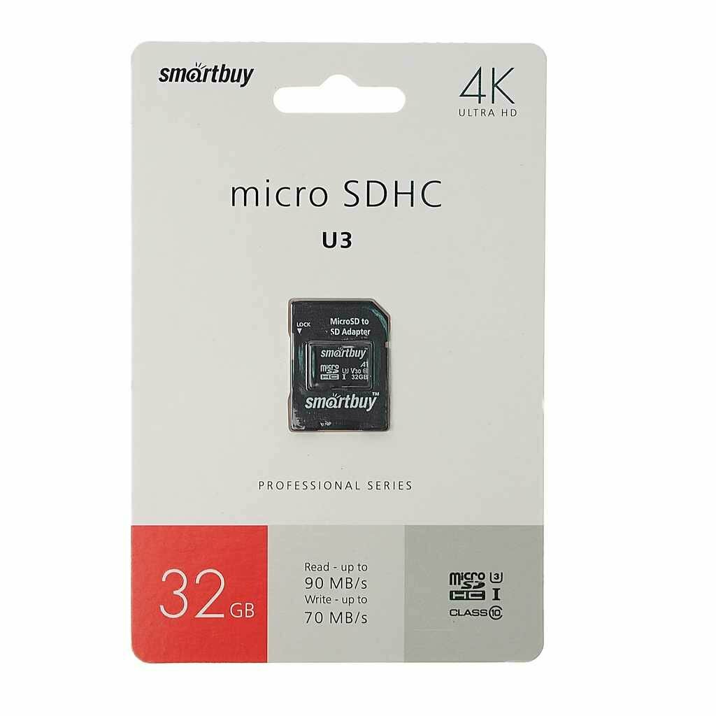 micro SDHC карта памяти Smartbuy 32GB Class 10 PRO UHS-I(U3) R/W:90/80 MB/s (с адаптером SD) интересное: