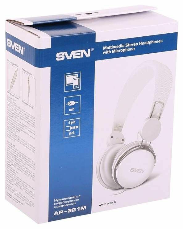 Гарнитура Sven AP-321M, для компьютера/мобильных устройств, накладные, белый [sv-015381]
