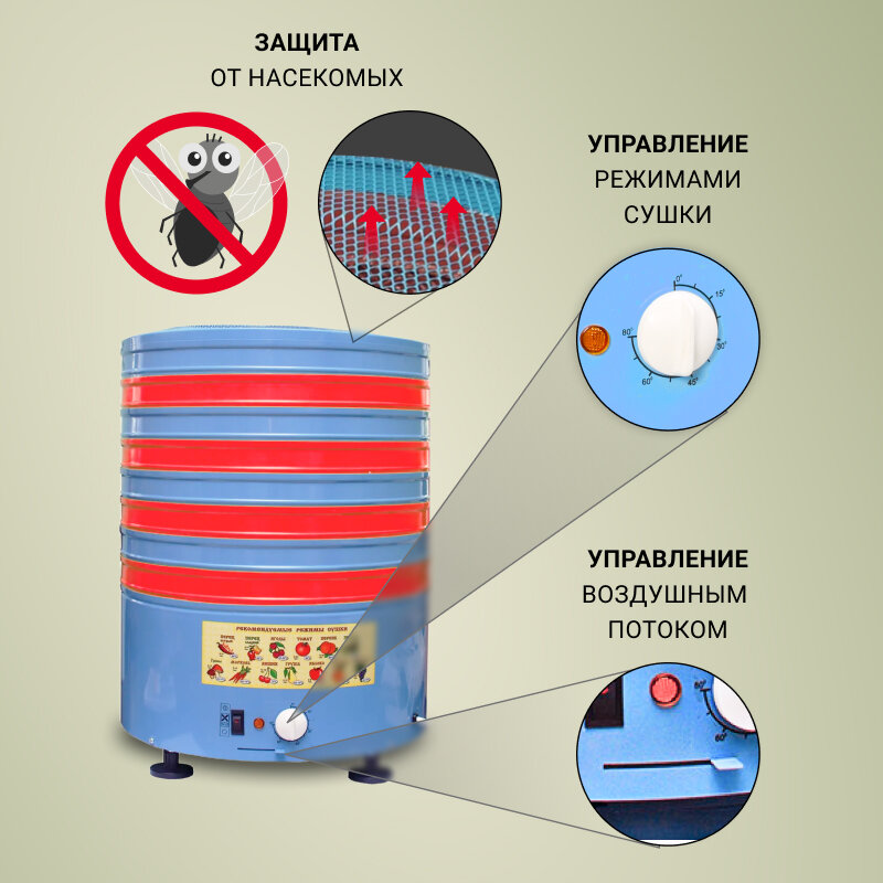 Сушилка для овощей и фруктов Элвин СУ-1У (увеличенная) 8 поддонов