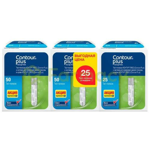 Контур Плюс, набор тест-полоски для глюкометра, 2 уп. по 50 шт.(+25 шт.)