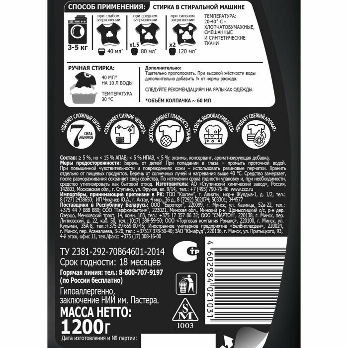 Гель для стирки большая стирка Black 1200 г 4602984021031
