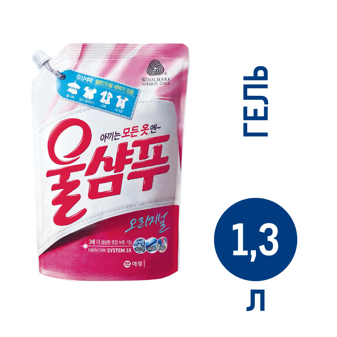 Aekyung Wool Shampoo Original Жидкое средство для стирки деликатных тканей Вул шампу 1.3 л в мягкой упаковке