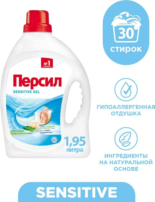 Гель для стирки Персил Sensitive для чувствительной кожи, 1.95 л, бутылка