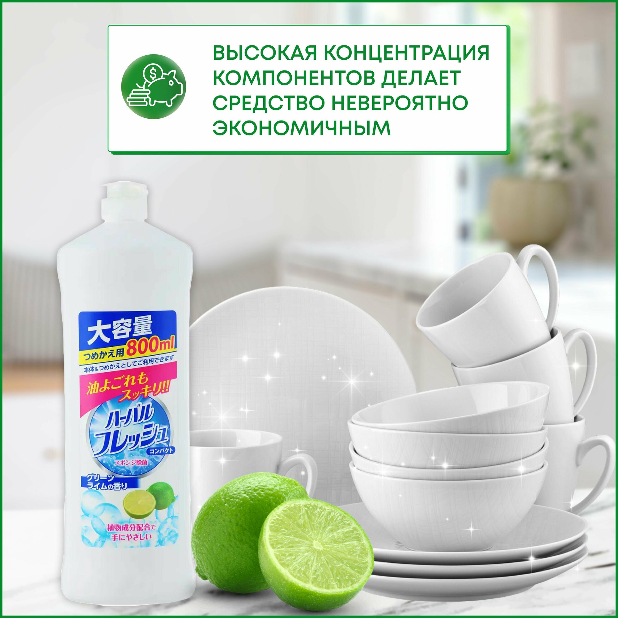 Японское концентрированное средство для мытья посуды, овощей и фруктов, с ароматом лайма, 800 мл, Mitsuei, Япония